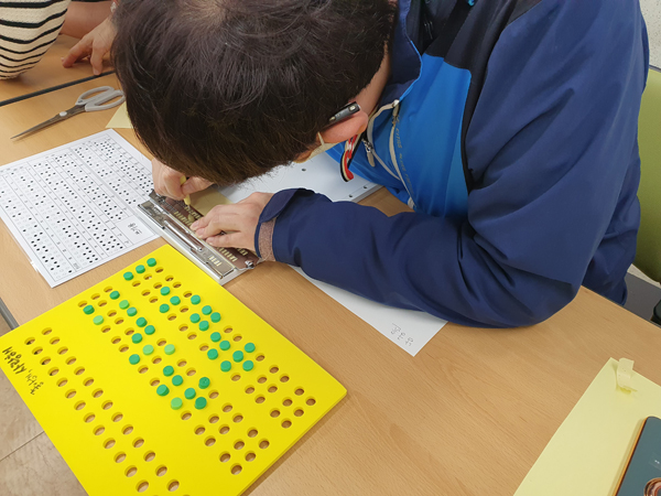또 다른 한 초등학생 참가자는 행사 전 집에서 스티커로 점자 편지를 직접 적어와 큰 감동을 전달하였다.